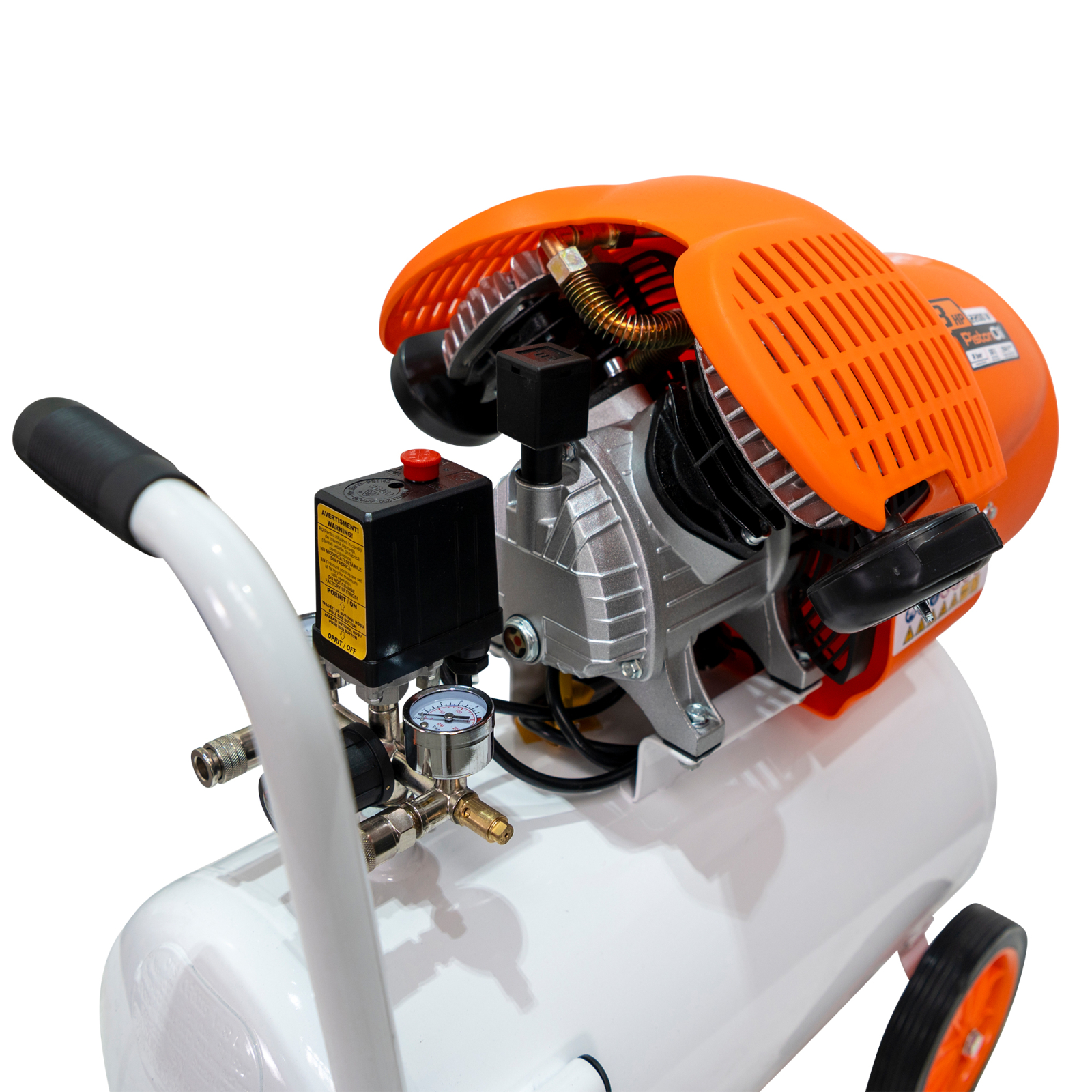 Tot în număr de 2 sunt și cilindrii compresorului care au rolul de a comprima aerul mai rapid și mai uniform, asigurând un debit constant și o presiune stabilă. Acest lucru reduce timpul de așteptare pentru reumplerea rezervorului și permite utilizarea continuă a sculelor pneumatice, chiar în condiții solicitante.
