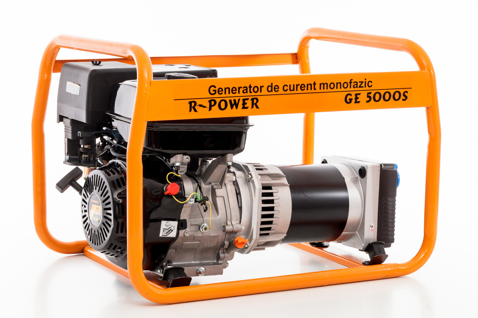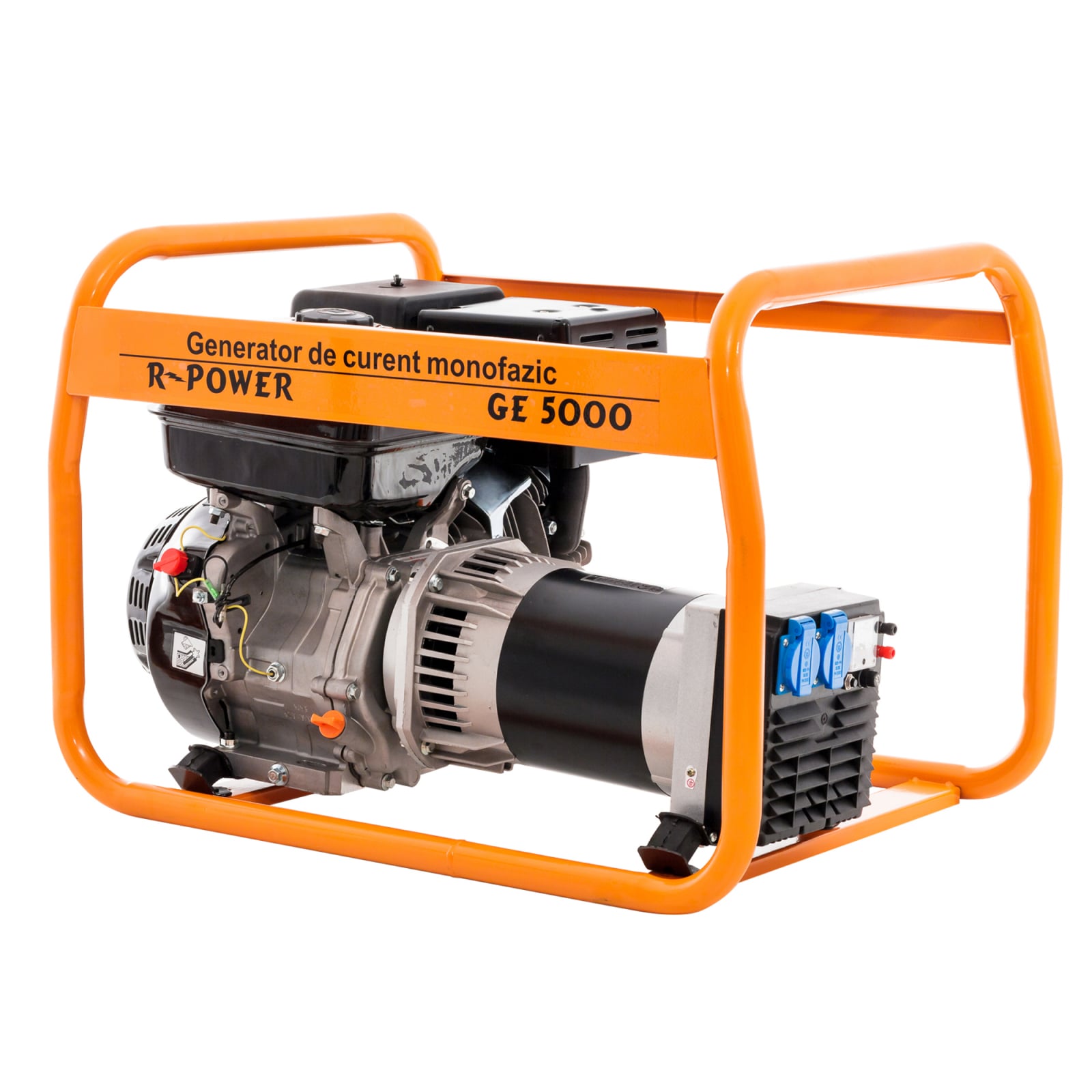 Generatorul de curent R-Power GE5000 este acționat de un motor în 4 timpi de înaltă calitate și este prevăzut cu întrerupător de protecție la suprasarcină._x000D_