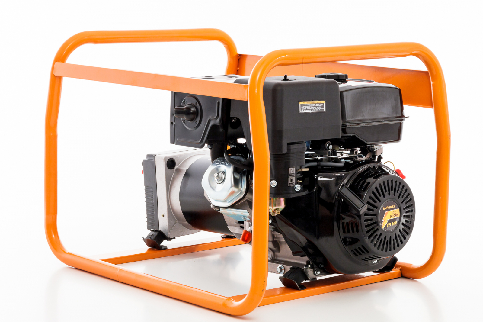 Generatorul de curent R-Power GE5000 este asigurată de un motor foarte puternic. Motorul are puterea de 13 CP, este extrem de fiabil, ușor de întreținut și cu rezultate dovedite în timp. Cu o asemenea putere veti putea conecta o multitudine de dispozitive la rețea: becuri, televizoare, calculator, hidrofor și multe altele._x000D_
