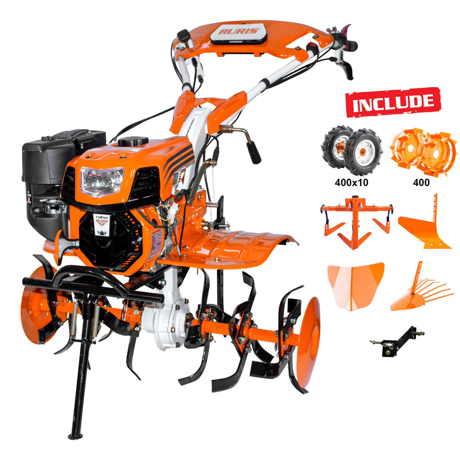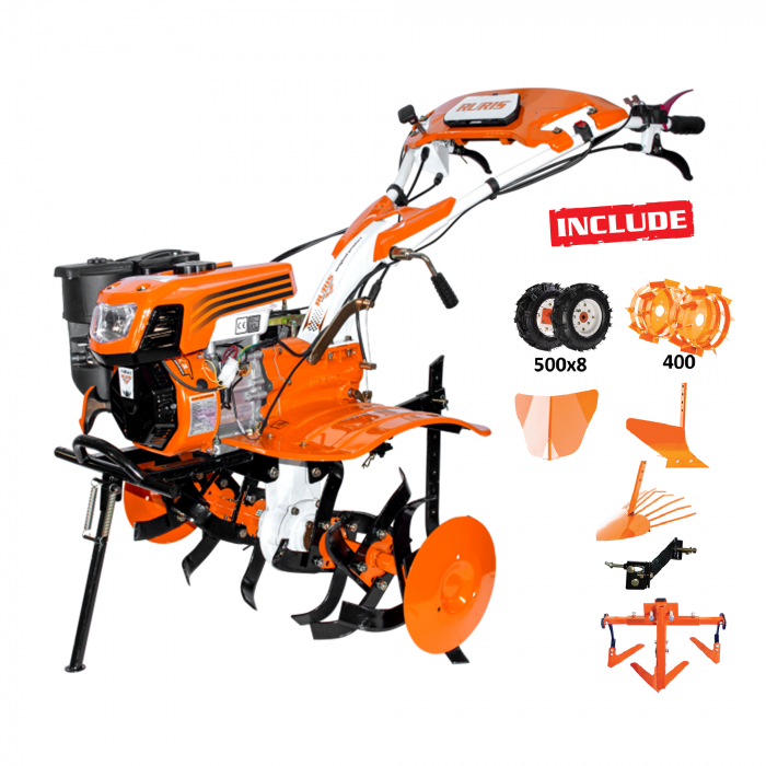 Motosăpătoarea profesională RURIS 732ACC, dotată cu motor General Engine de 7,5 CP, este destinată lucrărilor agricole din grădini şi culturi de câmp cu dimensiuni de peste 7000m. Avantaje Carcasă robustă de fontă pentru cutia de viteze şi transmisie. Schimbător de viteze cu acţionare uşoară - Easy Control. Sistemul de luminat cu far permite utilizatorului RURIS să efectueze lucrări pe timp de noapte, precum și în zone cu luminozitate scăzută. Motosăpătoarea RURIS 732ACC permite toate tipurile de accesorizări pentru lucrări agricole, accesorizări ce sunt prezentate în lista de produse compatibile RURIS. Beneficii Utlizare pe toate tipurile de sol datorită robusteţii materialului din care este confecţionată carcasa (fontă nodulară). Cutia de scule permite utilizatorului să depoziteze accesoriile în timpul deplasării. Uşurinţă şi confort în utilizare, indiferent de nivelul de experienţă şi cunoştinţe. Schimbătorul de viteze cu acţionare Easy Control, dispune de un sistem de pârghii care ajută utilizatorul să facă schimbul de viteze uşor fără a mai indexa mecanic pinioanele din cutia de viteze.